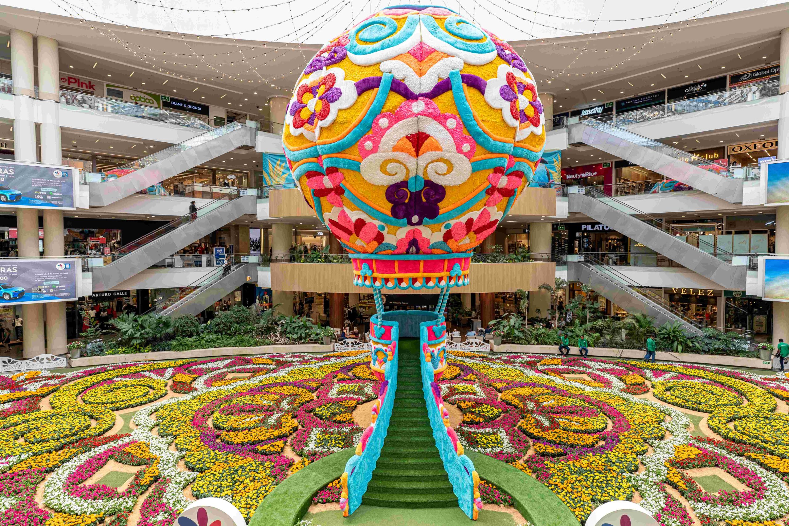 Esta es la versión más grande de la historia del Tapete, con 200.000 flores instaladas en los 1.000 metros cuadrados de la Plazoleta Central, con especies como Marigold naranjas y amarillas y Petunias rojas, rosadas, purpura y blancas, que le darán el toque colorido y majestuoso que caracteriza a esta gran obra de arte que maravilla a todos los visitantes. Y el eje central es un Globo Aerostático suspendido a 14 metros de altura, que invita a todos los visitantes a subir, explorar una vista mágica vista del Tapete de flores, a capturar las mejores fotos, disfrutar del aroma de las flores y a sorprenderse con una experiencia inolvidable.